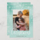 Cette Elégante Carte de Noël simple comporte des flocons de neige sur un arrière - plan d'hiver vert doux. Joyeux Noël est écrit dans une belle écriture manuscrite. Personnalisez cette carte de Noël avec votre photo et votre nom de famille.
