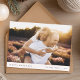 Une carte de voeux stylée avec la typographie classique "Happy Holidays" en noir sur un simple arrière - plan blanc épuré et minimaliste, avec une couleur douce sage vert foncé au verso. La photo, le nom et l'accueil peuvent être facilement customisés pour une touche personnelle. Un design de Noël simple, minimaliste et contemporain pour se démarquer de cette période de vacances ! L'image montrée n'est à des fins d'illustration que pour être remplacée par votre propre photo. L'image de l'espace réservé est celle d'un couple heureux portant des chemises blanches avec un coucher de soleil et un fond de bruyère.