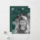 Elégant carte photo de vacances avec votre photo verticale encadrée par une arche verte d'épinette et des flocons de neige blancs. "Joyeux Noël" est affiché dans un script de calligraphie blanche. Personnalisez l'avant de la carte de Noël de flocon de neige en ajoutant votre nom. La carte inverse pour afficher une photo supplémentaire, l'année et votre message personnalisé en lettres blanches sur un arrière - plan vert d'épinette.