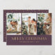 Carte de Noël couleur violet et or avec collage photo sur un arrière - plan violet. Une feuille d'or attire l'arrière - plan à l'arrière. Personnalisez facilement ces cartes photo de Noël avec vos images et texte. L'effet de feuille d'or n'est simulé que dans l'illustration.