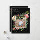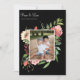 Elégante aquarelle botanique fleurie et verdure, carte photo de vacances. Caractéristiques, photo unique encadrée de fleurs et de feuillage sur l'avant et 2 photos encadrées sur le dos et arrière - plans de couleur noire chic.