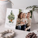 Elégant carte photo de vacances avec un arbre de Noël aquarelle festif orné d'ornements en verre et entouré de cadeaux enveloppés. Personnalisez l'avant de la carte en ajoutant un message d'accueil personnalisé, votre nom de famille, l'année et une photo. Ajoutez votre message personnalisé à l'intérieur de la carte ou laissez-le vide pour écrire le vôtre. Le dos de la carte de Noël arbre de vacances revient à un arrière - plan vert foncé solide avec des flocons de neige subtils.