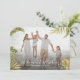 Cette période de vacances, charmez vos proches avec une "Elegant Tropical Holiday Card" unique et élégante. Avec un modèle photo niché au milieu de feuilles luxuriants de palmiers, cette carte se démarquera sûrement ! Envoyez les voeux les plus chauds avec votre nom de famille, alors que vous dévoilez un arrière - plan blanc propre entouré d'un délicieux design tropical de Noël à l'envers. Le mélange captivant de feuilles de palmiers, d'étoiles étincelantes et d'accents ornés reflète l'élégance et la joie. Cachez votre style ce Noël, l'envelopper d'une touche tropicale !