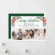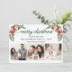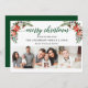 Script de calligraphie moderne. Elégante Winter Floral 3 Photo Joyeux Noël Card comprend de belles poinsettias rouges aquarelle, verdure botanique, feuillage hivernal, baies sèches, roses blanches, coton, cônes de pin et baies bleues. Retour vert.