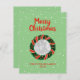 Elégante couronne de Noël verdure photo personnalisée Carte de vacances. Téléchargez votre propre photo dans la couronne ronde. Design élégant avec votre image. Belle carte de voeux avec nom et date personnalisés. Design vert dessiné à la main avec baies rouges, ruban et flocons de neige. Vous pouvez envoyer directement de Zazzle à vos amis et votre famille avec votre liste d'adresses. Arrière - plan couleur vert ou personnalisé.