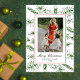 Joyeux Noël ! Envoyez vos vœux de Noël personnalisés avec cette élégante carte de vœux photo de vacances sur le thème botanique boho rustique. Elle comporte un cadre d'aiguilles de pin vertes dessinées à la main sur fond blanc avec un cadre rouge délicat, une photo horizontale et un texte noir dans un mélange de calligraphie vintage et de typographie élégante sur fond blanc. Le verso comporte votre message personnalisé dans le même cadre de pin rustique. Personnalisez cette carte en ajoutant votre photo, votre nom de famille, votre année et votre message via le bouton "Personnaliser ce modèle". Cette carte de Noël photo vintage rustique peut être facilement modifiée pour d'autres couleurs en cliquant sur le bouton "Modifier davantage".
