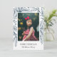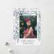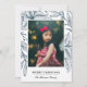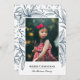 Ces belles cartes de photos de vacances présentent une empreinte / dessin de poinsettias, de baies et de brindilles en bleu marine sur fond blanc. Le dos de la carte contient un motif assorti.