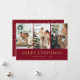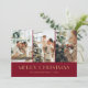 Carte de Noël en rouge et or personnalisée avec un collage photo sur un arrière - plan rouge. Une feuille d'or attire l'arrière - plan à l'arrière. Personnalisez facilement ces cartes photo de Noël avec vos images et texte. L'effet de feuille d'or n'est simulé que dans l'illustration.