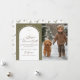 Elégant Botanical Peace on Earth Photo Holiday Card. Design dispose d'une arche élégante avec une branche dessinée à la main avec des bougies associées à "Paix sur Terre" sur un script moderne. Il y a beaucoup d'espace pour en faire votre propre - customisez tous les modèles de texte. Affiché dans une palette de vert, brun, bronzé et blanc. Téléchargez votre propre photo. © Kimbellished, LLC