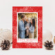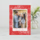 Elégante carte de vacances avec votre photo encadrée de fleurs poinsettia blanches, pinecones et pignons de pin sur un arrière - plan rouge festif. "Happy Holidays" s'affiche en lettres rouges classiques avec le nom de votre famille ci-dessous. La carte de vacances moderne s'inverse pour afficher un motif botanique rouge assorti.