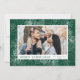 Elégante carte de vacances avec votre photo horizontale encadrée de fleurs poinsettia blanches, pinecones et pignons de pin sur un arrière - plan vert festif. "Joyeux Noël" est affiché en lettres vertes classiques avec le nom de votre famille sur la droite. La carte de vacances moderne s'inverse pour afficher un motif botanique vert assorti.