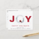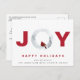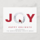 Une élégante carte postale de bienvenue saisonnière pour express la gratitude et l'appréciation de votre entreprise à vos clients. Sur le devant, le mot "JOY" en gros bloc rouge, avec le "O" représenté par une aquarelle illustrant des pins enneigés et un oiseau cardinal rouge perché à l’intérieur, un accueil saisonnier personnalisable (initialement défini sur "Joyeuses Fêtes") et le nom de votre entreprise. Au verso, personnalisez votre message et ajoutez votre logo d'entreprise ou laissez vide.