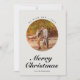 Cette élégante carte à deux faces de Noël dispose d'une typographie script moderne et d'un cadre photo circulaire. Insérez vos photos préférées et customisez-les à votre goût. Photos de prostooleh / Freepik.