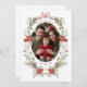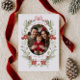 Voici notre carte de vacances élégante, agrémentée d'un superbe design de couronne de verdure hivernale. Si vous recherchez une carte de vacances qui respire le raffinement, le luxe et le style, c'est la carte parfaite pour vous. Le cadre de couronne ajoute une touche d'élégance vintage à la carte. Il dispose d'une aquarelle botanique d'hiver vert et rouge complexe qui est à la fois intemporelle et unique, ce qui fait de votre carte de vacances se démarque du reste. Au contraire, vous trouverez suffisamment d'espace pour ajouter vos voeux de Noël personnels à vos amis et à votre famille.