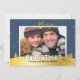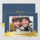 Célébrez la magie de la saison avec cette carte de vœux de Noël personnalisable « Joyeux Noël » avec une photo de famille, mettant en vedette un fond de pays de neige hivernal et des flocons de neige scintillants. La carte est ornée d'accents bleus et dorés élégants pour ajouter une touche de sophistication à vos vœux de fêtes. Remplacez la photo par défaut par votre propre photo et ajoutez le nom de votre famille pour créer une carte de Noël unique et originale. Au verso de la carte, on retrouve de la neige qui tombe, un simple vœu de « Joyeux Noël », ainsi que du texte supplémentaire personnalisable.