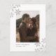 Carte de vacances élégante moderne avec photo et flocons d'argent qui se chevauchent.