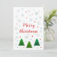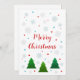 Elégante carte de Noël moderne avec des flocons de neige et des sapins. Des épinettes vertes et verdoyantes avec de la neige et des points rouges et bleus créent une atmosphère sereine et magique. Parmi les arbres, on trouve des flocons de neige délicats, qui brillent de bleu clair et de gris. Une touche de vacances subtile s'ajoute à des éclats de couleurs vives, sous forme de points rouges et bleus, qui rappellent les joyeux ornements qui ornent un sapin de Noël. Ces points ajoutent un contraste ludique au paysage enneigé, évoquant des sentiments de joie et de fête. Le motif saisit l'essence de la saison des Fêtes, alliant la beauté naturelle de l'hiver à la chaleur et à la joie des fêtes de Noël.Personnalisez cette carte de vacances avec votre texte.