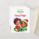 Une jolie carte postale de Noël avec une petite fille mignonne et un garçon elfes de couleur en vert et rouge avec des flocons de neige Retro se sentant vieux mode Noël.