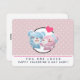 Carte plate avec l'image de dessin mignonne d'une paire d'ours, un ours est rose pastel avec un petit arc et elle embrasse la joue d'un ours bleu qui semble ravi. Très mignon et kawaii. Beaucoup de coeurs rouges flottant tout autour.