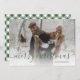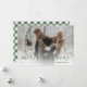 Cartes de Noël personnalisées en vert avec titre de script écrit à la main sur l'avant et motif plaid vert et blanc en vichy à l'arrière. Personnalisez facilement ces cartes de Noël vert plaid avec votre image et un nom de famille.