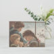 Deux frères et leur sœur partagent un goûter tandis qu'une volée d'oiseaux se nourrit à l'extérieur de leur fenêtre enneigée. Illustration vintage idéale pour une carte de Noël ou un vœu d'hiver. Également disponible en téléchargement numérique pour un usage personnel.