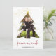 Envoyez des salutations de vacances joyeuses avec ces beaux cartes photos de vacances avec une image verticale ou orientée portrait à l'intérieur d'une illustration découpée d'arbre de Noël moderne surmontée d'une fausse étoile dorée. "Christmas Cheer" apparaît en dessous dans des lettres rouges canneberges festives, avec votre nom de famille et l'année en dessous. Ajoutez une photo supplémentaire et un message personnel à l'arrière.