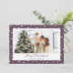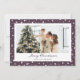 Carte de vacances photo violet personnalisée avec un beau titre de script festif et de petites étoiles sur un arrière - plan violet simple sur le devant et à l'arrière. L'arrière - plan peut être changé en n'importe quelle couleur. Personnalisez facilement cette carte de vacances minimaliste violet avec votre photo et le nom de famille.