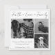 Profitez de souhaiter à vos amis et à votre famille un joyeux Noël avec ce design classique simple avec de l'espace pour trois photos et les mots "Faith Love Family" écrit dans la calligraphie moderne en haut. Une branche de pin dessinée à la main est affichée au dos de la carte pour ajouter une touche de goût de la saison des fêtes à cette carte de voeux minimaliste.