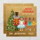 Créé pour une famille de cinq personnes, avec trois filles. Cette carte de vacances amusante présente un Casse-Noisette, Clara et trois ballerines. Elle apportera de la joie à tous ceux qui la recevront. Un élégant arbre de Noël en sucre prune vert et or décore la scène. Un fond doré texturé et une police vintage pour tous les textes personnalisables complètent le design.