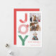 La carte de vœux de vacances de famille de collage photo de joie de script gras minimaliste comprend un design simple et moderne associé à une police Sans Serif grasse et 3 photos avec le message de vœux. Personnalisez-la avec vos propres photos et messages.