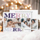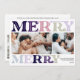 Préparez-vous à patiner le jeu de cartes de vacances avec notre Modern Simple 4 Photos Salutation de Noël! Avec un script écrit à la main disant joyeux dans les teintes violet foncé de noël. Toutes les couleurs sont modifiables.