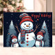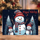 Célébrez la saison des Fêtes avec cette adorable carte mettant en vedette une famille de bonhomme de neige dans une forêt hivernale enneigée. Le texte "Happy Holidays" et le design charmant de bonhomme de neige apportent chaleur et joie, parfait pour envoyer à des proches pendant la saison festive.