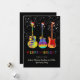 Un artiste amusant a créé une carte de Noël à thème de la guitare vibrante pour guitaristes, musiciens, professeurs de musique et amateurs de musique. Trois guitares psychédéliques colorées et branlantes portant des chapeaux de Père Noël dans la neige sur un arrière - plan noir pour égayer la saison festive et apporter de la joie et de l'humour saisonniers. La typographie moderne aux couleurs vives avec la citation Joyeux Noël de Joyeux et Lumineux où vous pouvez ajouter des noms pour personnaliser cette carte drôle. Oeuvre originale unique de l'artiste Catherine Sweetman