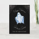 Fantôme sur feuille blanche sur fond noir avec des toiles d'araignée décorant les coins supérieurs de la carte de vœux. Le motif au verso de la carte présente un candélabre et des toiles d'araignée effrayantes dans les coins supérieurs.