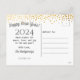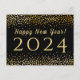 Les cartes postales sont un excellent moyen de souhaiter une bonne année à votre famille et à vos amis. Ce design présente un fond noir avec des confettis dorés faux dispersés au-dessus et en dessous des mots "Bonne Année ! 2019". Le dos de la carte postale est orné d'une pluie de confettis dorés le long du haut. Il comporte un message, une salutation et une signature pour que vous puissiez personnaliser. Conçu par l'artiste © Susan Coffey. Photographie © Storytree Studios, Stanford, CA.