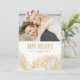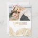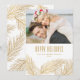 Joyeuses fêtes ! Envoyez vos souhaits de vacances à vos proches avec cette carte de vacances photo personnalisable. Il présente des aiguilles de pin à feuille d'or et des cônes de pin avec typographie classique. Personnalisez cette carte de vacances élégante en ajoutant vos détails. Cette carte de vacances photo personnalisée est disponible sur d'autres cartes.