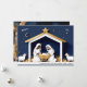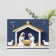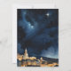 Veuillez noter qu'aucune embarcation papier n'est utilisée dans cette conception. La carte est imprimée à plat, mais a un effet 3D faux, avec une apparence de papercraft dans l'illustration. Cette belle et sereine carte de Noël de la nativité moderne, présente la Sainte Famille sous une étoile dorée brillante de Bethléem. Ce design élégant dépeint la scène du premier Noël avec une touche minimaliste et contemporaine. L'arrière - plan bleu indigo profond est magnifiquement contrasté avec les robes blanches de Marie et Joseph et les accents dorés de la crèche et du toit stable. Les sentiments de "Paix" et de "Joie" parmi les étoiles complètent cette image tranquille. Sur le dos est un ciel nocturne spectaculaire et atmosphérique sur la ville de Bethléem, dans un style aquarelle, avec un tatouage brillant, parfaitement complété par le design avant paisible. Idéal pour ceux qui recherchent une carte à thème chrétienne, ou un design non photo, et ceux qui apprécient une conception moderne et minimaliste sur un thème traditionnel. Cliquez sur "Personnaliser" et modifiez le nom de famille et l'année au bas de la carte à votre propre nom.