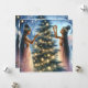 Carte de Noël personnalisée. Illustration de fées ou d'anges afro-américains décorant un sapin de Noël dans un pays des merveilles hivernal. Fond féerique éthéré magnifique.