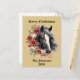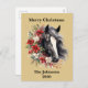 Charme rustique - carte postale de Noël à cheval personnalisée avec un cheval noir régal encadré par une couronne de ferme rouge et marron et des poinsettias festives, cette carte capture la beauté de la vie rurale à Noël. Idéal pour les amateurs de chevaux, les familles de fermiers et tous ceux qui aiment le pays. Design de cheval aquarelle.
