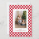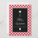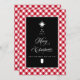 Simple élégante illustration de calligraphie en blanc, sur un design minimaliste de style tableau noir... terminé par un fond écossais rouge et blanc. Le résultat est une carte de Noël classique de ferme moderne !