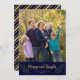 Vertical Holiday Carte photo avec les mots "Merry and Bright" dans un script élégant en faux or entouré de feuilles festifs et baies contre un arrière - plan bleu. La carte comprend une bande bleue et faux or à l'arrière. Consultez d'autres articles de vacances ici https://www.zazzle.com/collections/holiday_christmas_new_year_cards-119015800351034065?rf=238364477188679314 Personnalisez-le en remplaçant le texte de l'espace réservé et remplacez l'exemple/l'espace réservé photo par votre propre photo. Pour plus d'options comme changer la police et sa taille, cliquez sur le bouton "Personnaliser". Photographie d'espace © Storytree Studios, Stanford, CA *Veuillez noter que le filigrane Zazzle qui apparaît dans l'aperçu du zoom n'apparaîtra PAS sur le produit imprimé final. © Bois de rose et agrumes