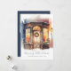 Cette carte de vacances élégante dispose d'une vitrine d'aquarelle d'hiver avec texte personnalisable pour votre salutation et nom de famille. Le dos contient un message personnalisé et votre photo préférée sur un arrière - plan bleu marine. Idéal pour envoyer des encouragements de vacances à vos amis et votre famille.