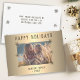 Festive Golden Metallic Snowflake Photo Christmas Carte de Noël. Arrière - plan à look métallique dans couleur or dégradé avec flocons de neige. Ajoutez votre photo et customisez l'année et le texte sur le devant et le message à l'intérieur ou effacez-le.