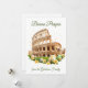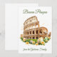 Carte de voeux de Pâques festive avec le Colisée à Rome, Italie. Le Colisée est exposé au centre de l'image, avec ses arches emblématiques et son architecture ancienne. Au-dessus du Colisée, le texte "Buona Pasqua" est écrit dans un élégant script vert, qui se traduit par "Bonne Pâques" en italien. Au bas de l'image, un agencement décoratif d'oeufs colorés de Pâques et de fleurs jaunes apporte une touche joyeuse et festive à la scène. Vous pouvez personnaliser cette carte avec votre nom. Bellissima Italia ©