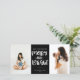 Festive Merry And Bright white Christmas typographie citation, carte photo de vacances noir. Caractéristiques de la carte, deux espaces photo modèles devant. Le dos de la carte est complété par un cadre doodle blanc sur l'arrière - plan noir correspondant. espaces de texte modèles pour le message et les noms.