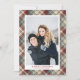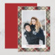 Carte Festive Tartan Motif Marié Noël Photo Holiday | Envoyez des voeux de Noël à votre famille et à vos amis avec cette carte de séjour photo personnalisable. Il présente un motif tartan festif rouge, blanc et gris. Utilisez le modèle pour ajouter vos noms et photo verticale ou portrait!
