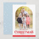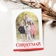 Un design de carte dans l'air du temps avec la citation "MERRIEST CHRISTMAS" et une forme d'arche pour votre photo préférée avec du texte superposé en bas.