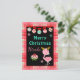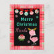 This cute and fun holiday card can be personalized with a name or title, such as mom, daughter, granddaughter, niece, friend etc. It features an adorable flamingo in reindeer antlers on a pink and red plaid background. The text combines sans serif fonts for a stylish and modern look. Winter snowflakes and patterned baubles add a festive touch.