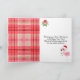 This cute and fun holiday card can be personalized with a name or title, such as mom, daughter, granddaughter, niece, friend etc. It features an adorable flamingo in a santa's hat on a pink and red plaid background. The text combines sans serif fonts for a stylish and modern look. Winter snowflakes and patterned baubles add a festive touch.