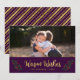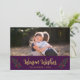 Carte photo de vacances avec les mots "Chaleureux Voeux" dans un script élégant en faux or entouré de feuilles festifs et baies contre un arrière - plan violet. La carte comprend une bande violette et faux or à l'arrière. Consultez d'autres articles de vacances ici https://www.zazzle.com/collections/holiday_christmas_new_year_cards-119015800351034065?rf=238364477188679314 Personnalisez-le en remplaçant le texte de l'espace réservé et remplacez l'exemple/l'espace réservé photo par votre propre photo. Pour plus d'options comme changer la police et sa taille, cliquez sur le bouton "Personnaliser". Photographie d'espace © Storytree Studios, Stanford, CA *Veuillez noter que le filigrane Zazzle qui apparaît dans l'aperçu du zoom n'apparaîtra PAS sur le produit imprimé final. © Bois de rose et agrumes